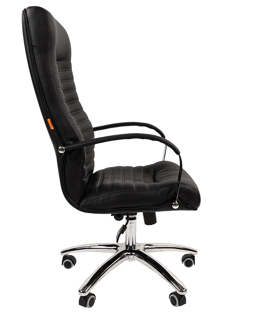 Стильное, необычное кресло руководителя. Его горизонтальный геометрический рисунок эффектно оттеняется хромированными элементами конструкции, а высокая эргономика достигается за счет анатомической формы и механизма качания повышенной комфортности.